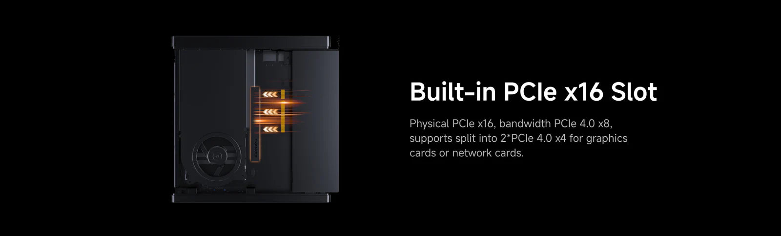 Built-in PCIe x16 slot, with a pull-out motherboard design