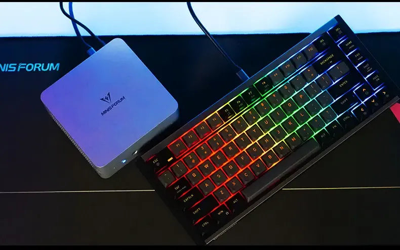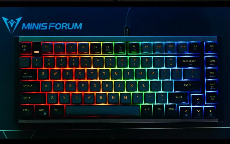 Als ein Werkzeug, das wir jeden Tag verwenden, ist das Aussehen und das Gefühl der Tastatur definitiv eine Beachtung wert. Deshalb hat Miniforum speziell eine mechanische Tastatur - MKB i83 - auf den Markt gebracht, deren Tastaturkörper aus eloxiertem Aluminium besteht und langlebig ist. Die Oberfläche ist sandgestrahlt und eloxiert, was sie glänzender macht. Unter der Voraussetzung, dass die Leistung gewährleistet ist, bietet sie ein erstklassiges Erlebnis. Das mehrfarbige Design passt perfekt zu verschiedenen Schreibtischstilen und die RGB-Hintergrundbeleuchtung bietet auch ein brillantes Farberlebnis.