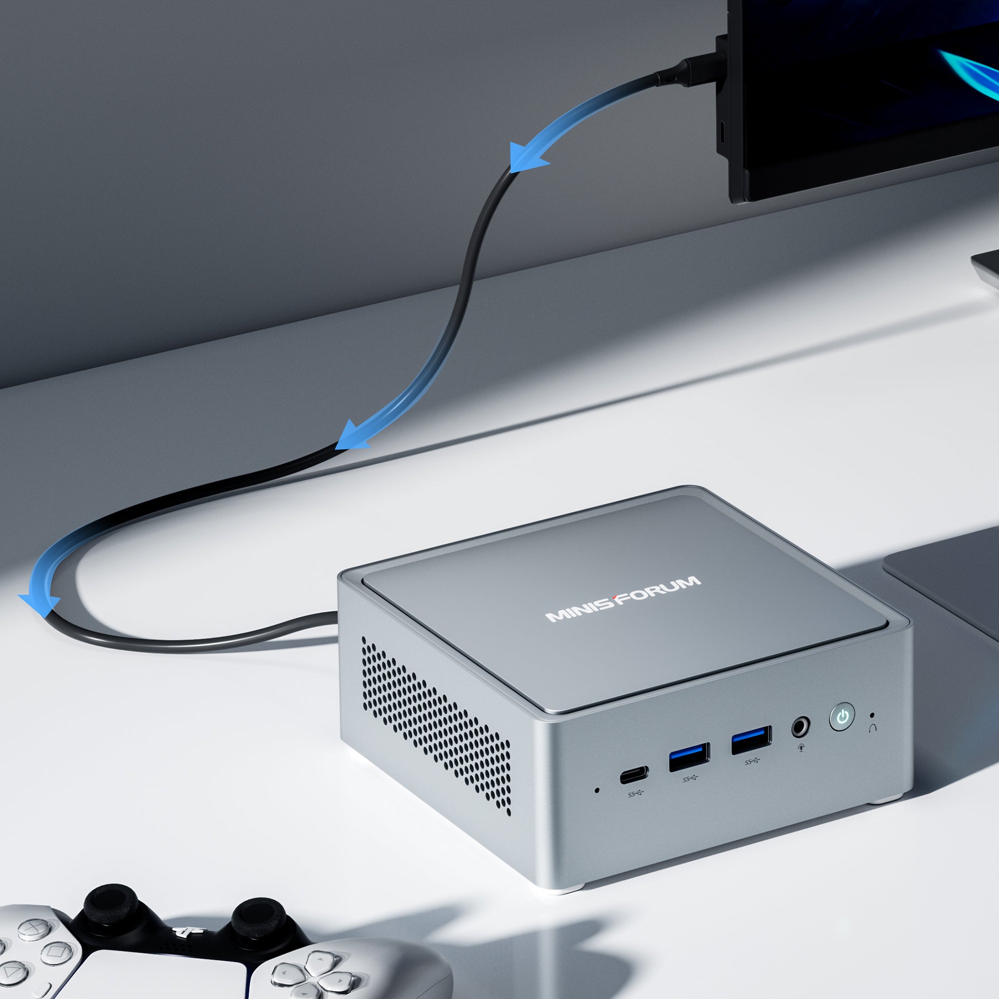 The UM790 Pro is the most powerful AMD mobile processor in 2023, equipped with an AMD Ryzen 7 7940HS processor. It has two USB4 ports and supports PD power supply. Additional USB Type-A ports and HDMI ports are also available to display four screens simultaneously. The same liquid gold cooling technology can easily handle rising temperatures when multitasking as well as running large games.