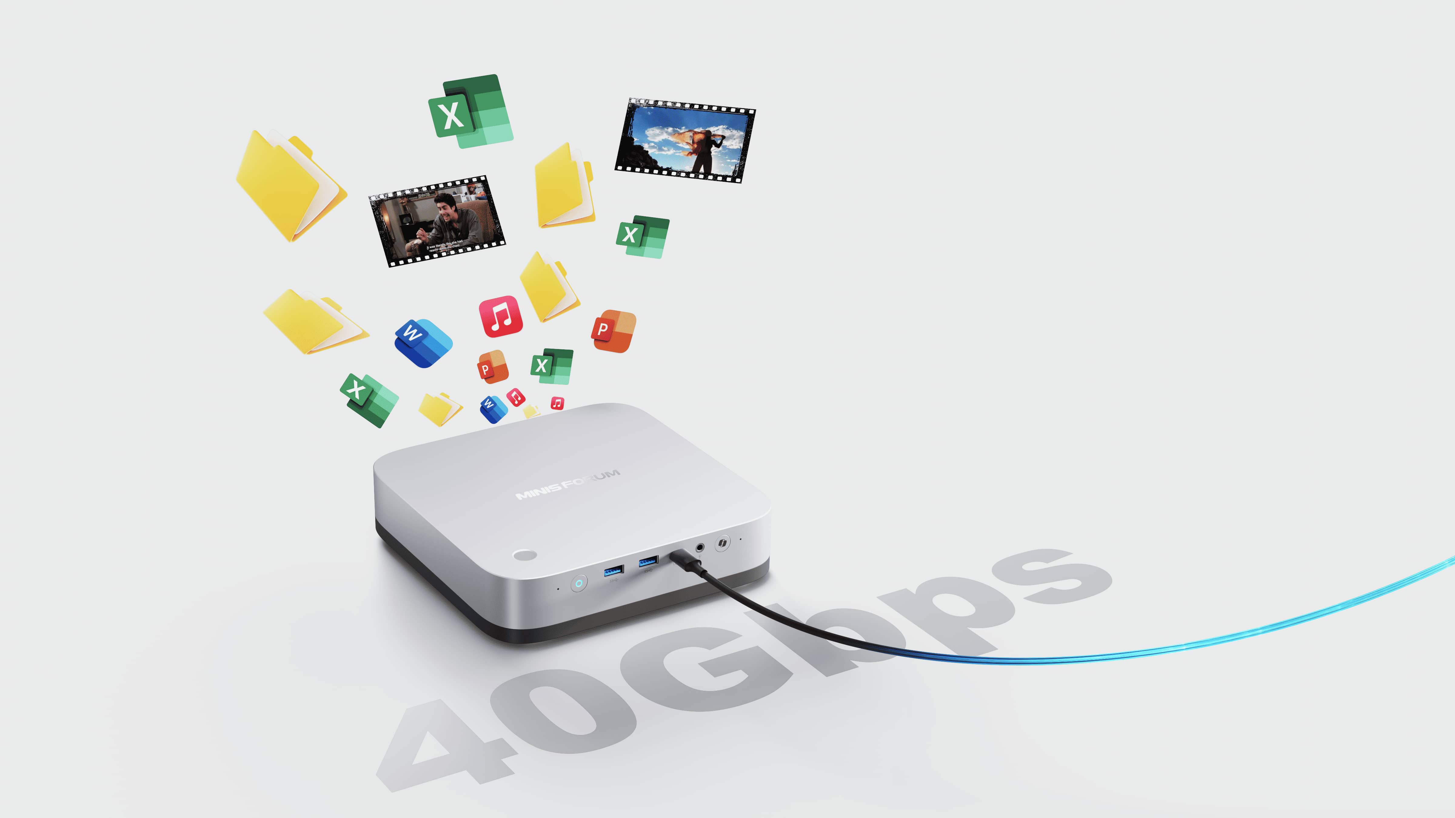 Der AI X1 Pro verwendet ein vertikales Design, das die Wärmeabfuhr und Raumausnutzung erheblich verbessert und den bereits kompakten Mini-PC überall zugänglicher macht. Auf dem oberen Gehäuse des PCs befindet sich ein Fingerabdruckerkennungsmodul, das die Bedienung erleichtert. Der Copilot-Wachknopf kann mit einem Klick KI-Funktionen aktivieren und macht die Arbeit effizienter. Außerdem verfügt er über zwei 2W-Lautsprecher und ein 135W-Netzteil, sodass Sie nicht einen großen Netzadapter mit sich herumtragen oder zusätzliches Audioequipment kaufen müssen, was die Nutzung erleichtert.