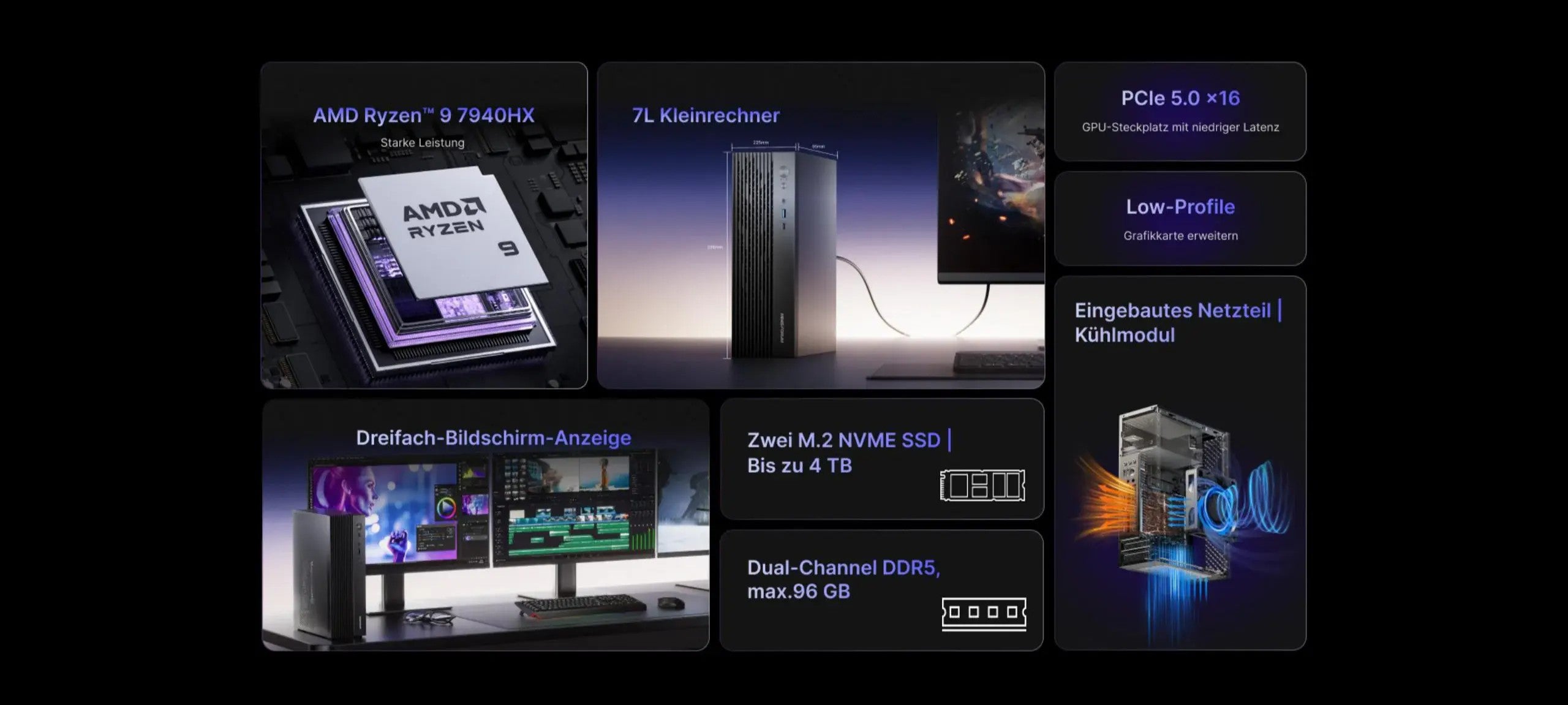 The Minisforum 790S7 is powered by an AMD Ryzen 9 7940HX with 16 cores and Hyper-Threading (SMT), which means it can process up to 32 threads simultaneously. Its performance is on a par with the Core 13900HX, which means it can easily play large games, complete graphic design and much more.
