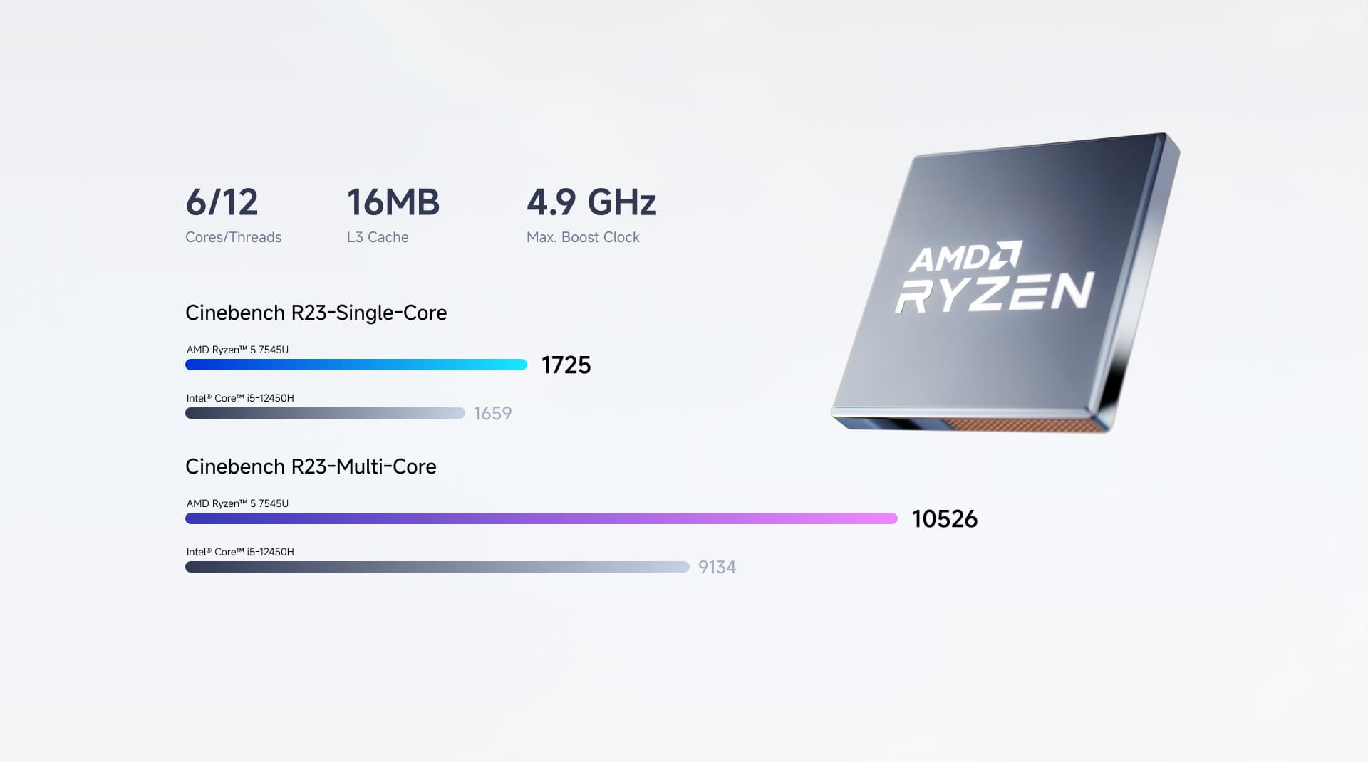 Der AMD Ryzen™ 5 7545U Prozessor bietet eine leistungsstarke Leistung mit 6 Kernen/12 Threads und Zen 4-Architektur.
