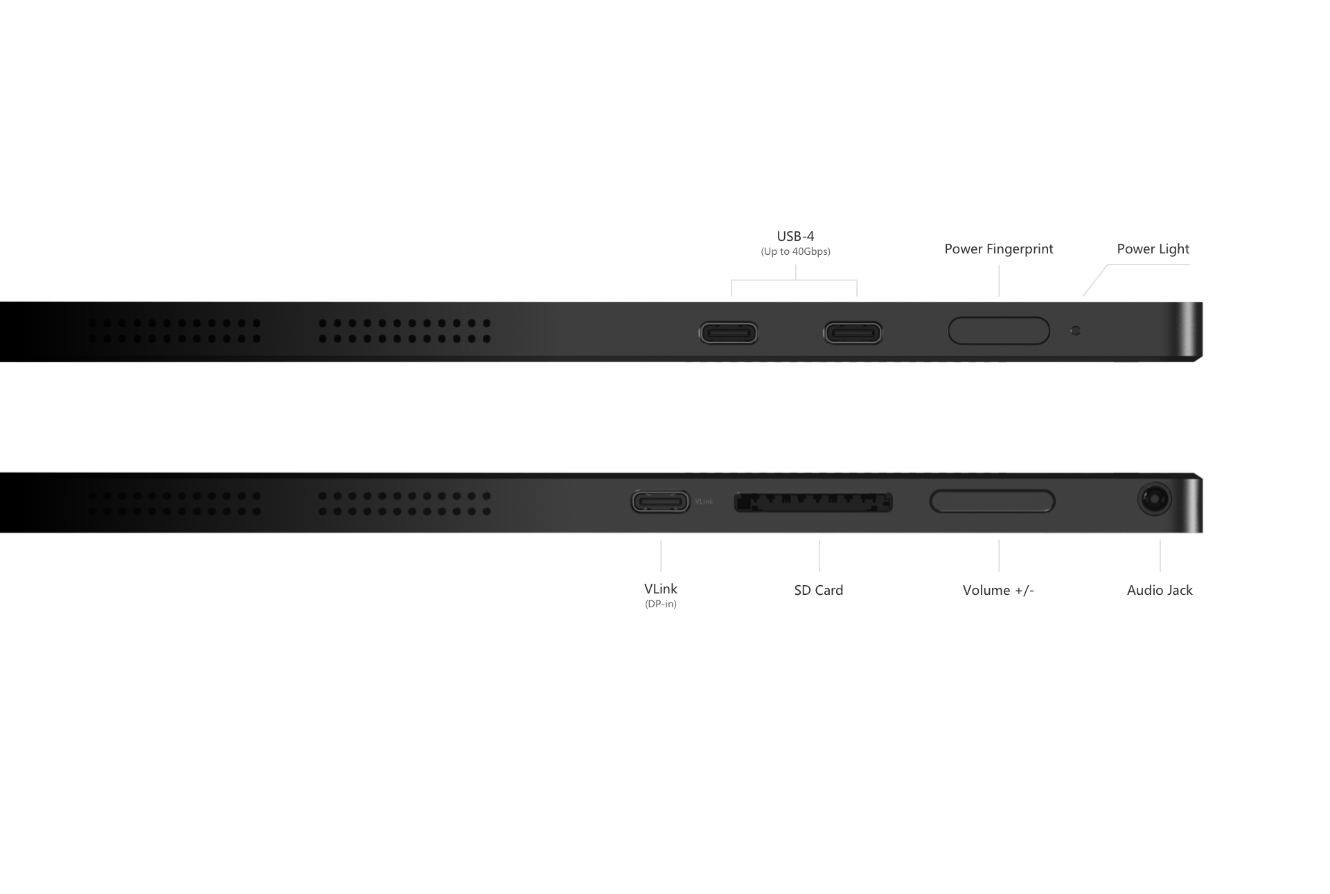 VLink (DP-in) unterstützt nur die Funktion eines tragbaren Bildschirms, wenn das Eingabegerät im ausgeschalteten Zustand über den Typ-C-Anschluss mit dem VLink-Anschluss des V3 verbunden ist. Dadurch können die Video- und Audiosignale des Eingabegeräts direkt angezeigt werden.