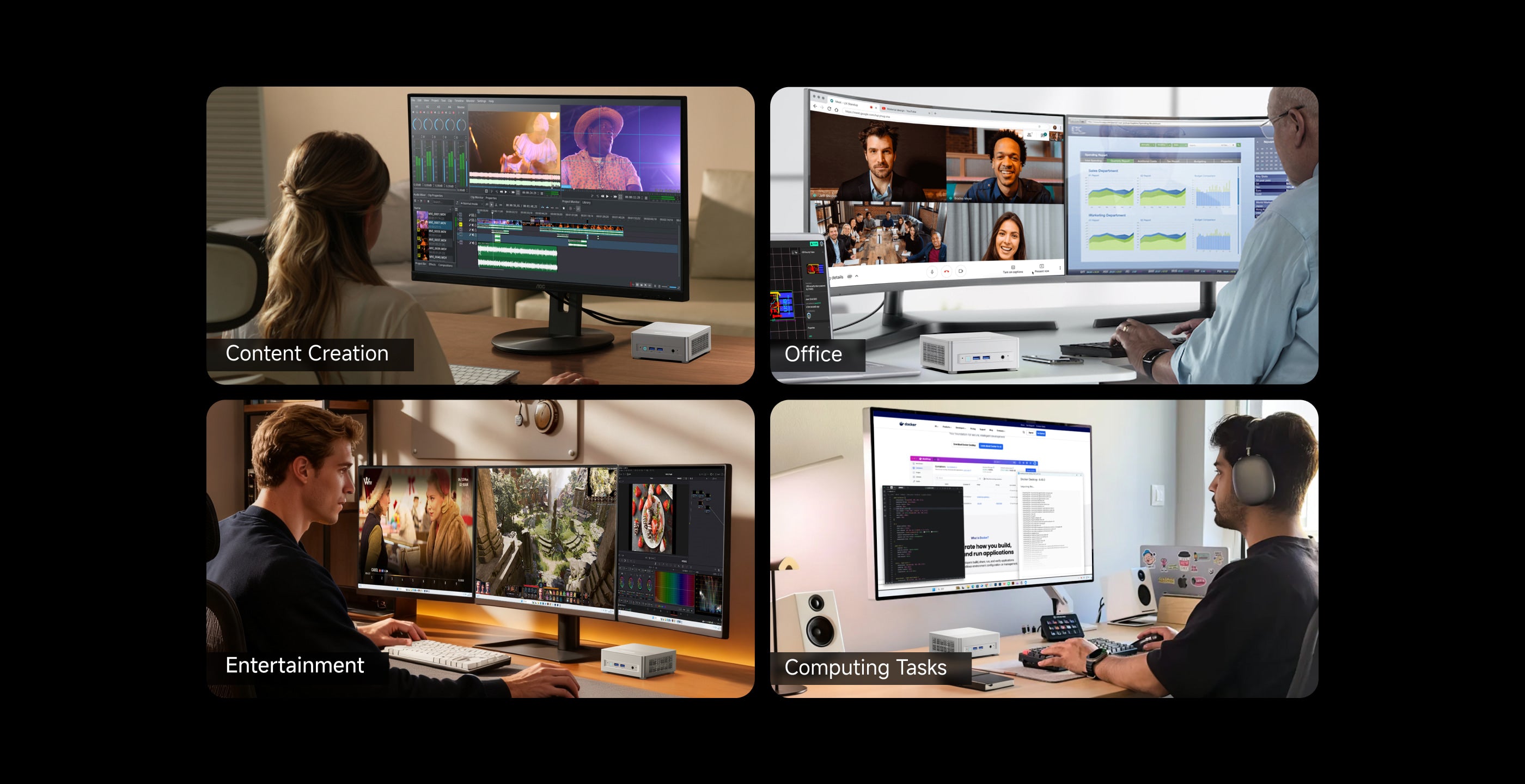 Mount behind the monitor, under the desk, or on the wall for flexible space usage.