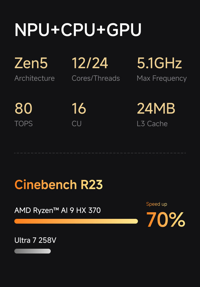 Powered by the cutting-edge AMD Ryzen™ AI 9 HX 370 processor, it offers an excellent balance of performance and energy efficiency, allowing you to run games and creative applications with ease.