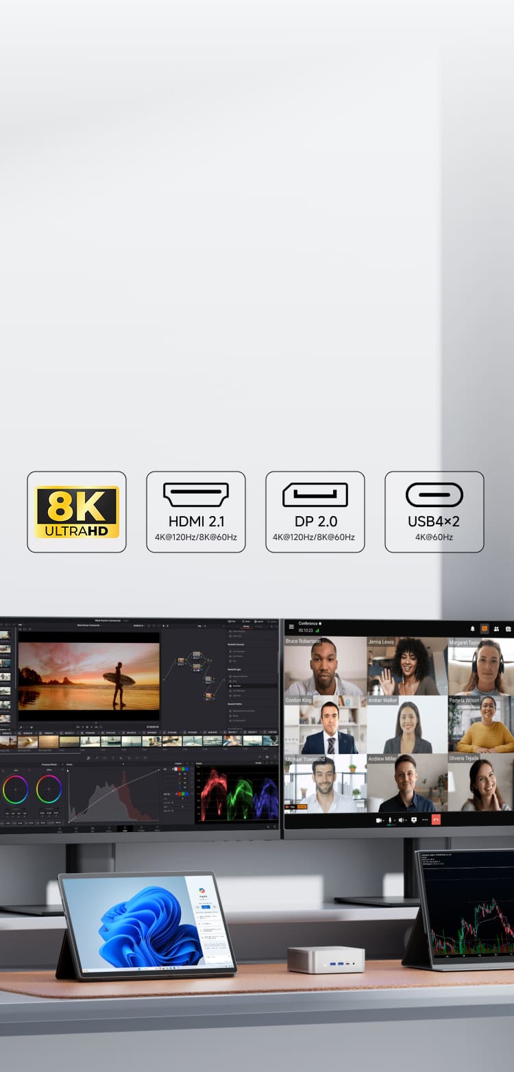 - DP2.0 x1 (8K@60Hz/4K@120Hz)