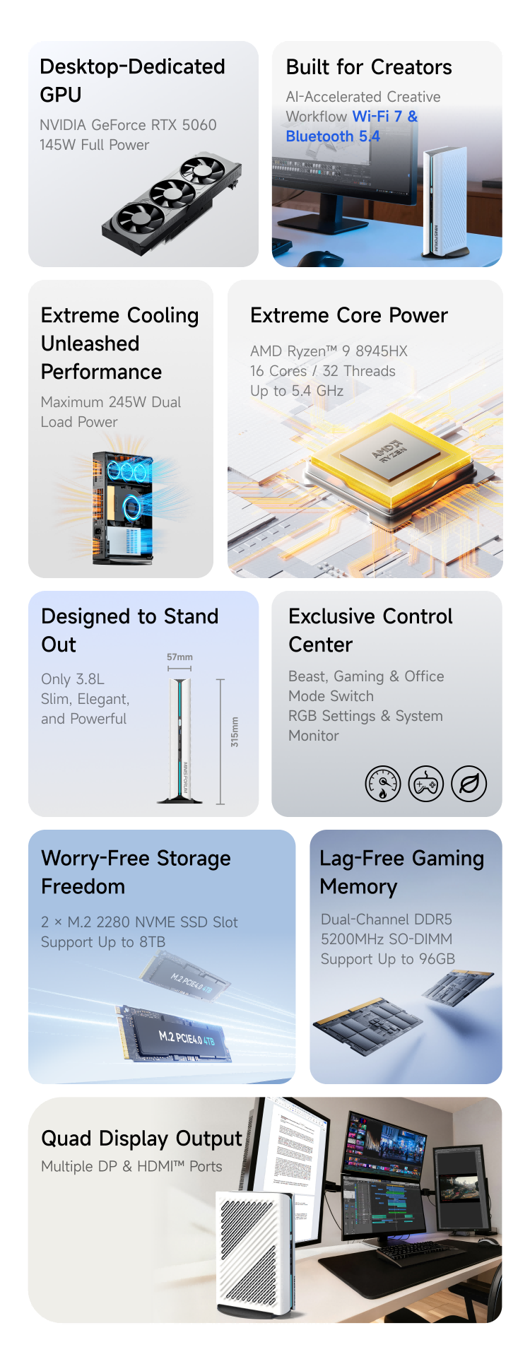 One-Click mode switching between Beast, Gaming, and Office mode for instant adaptation to any task.
