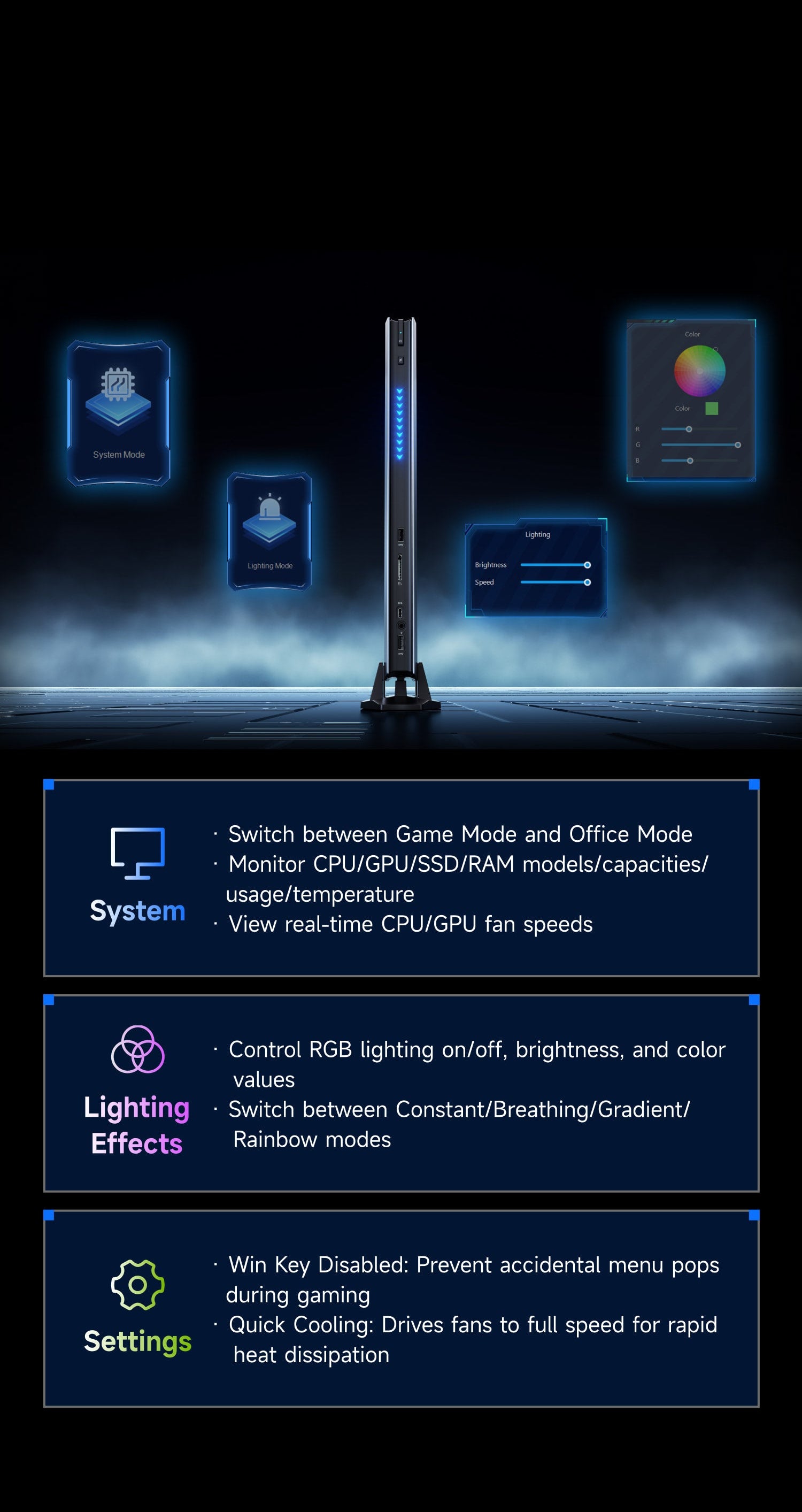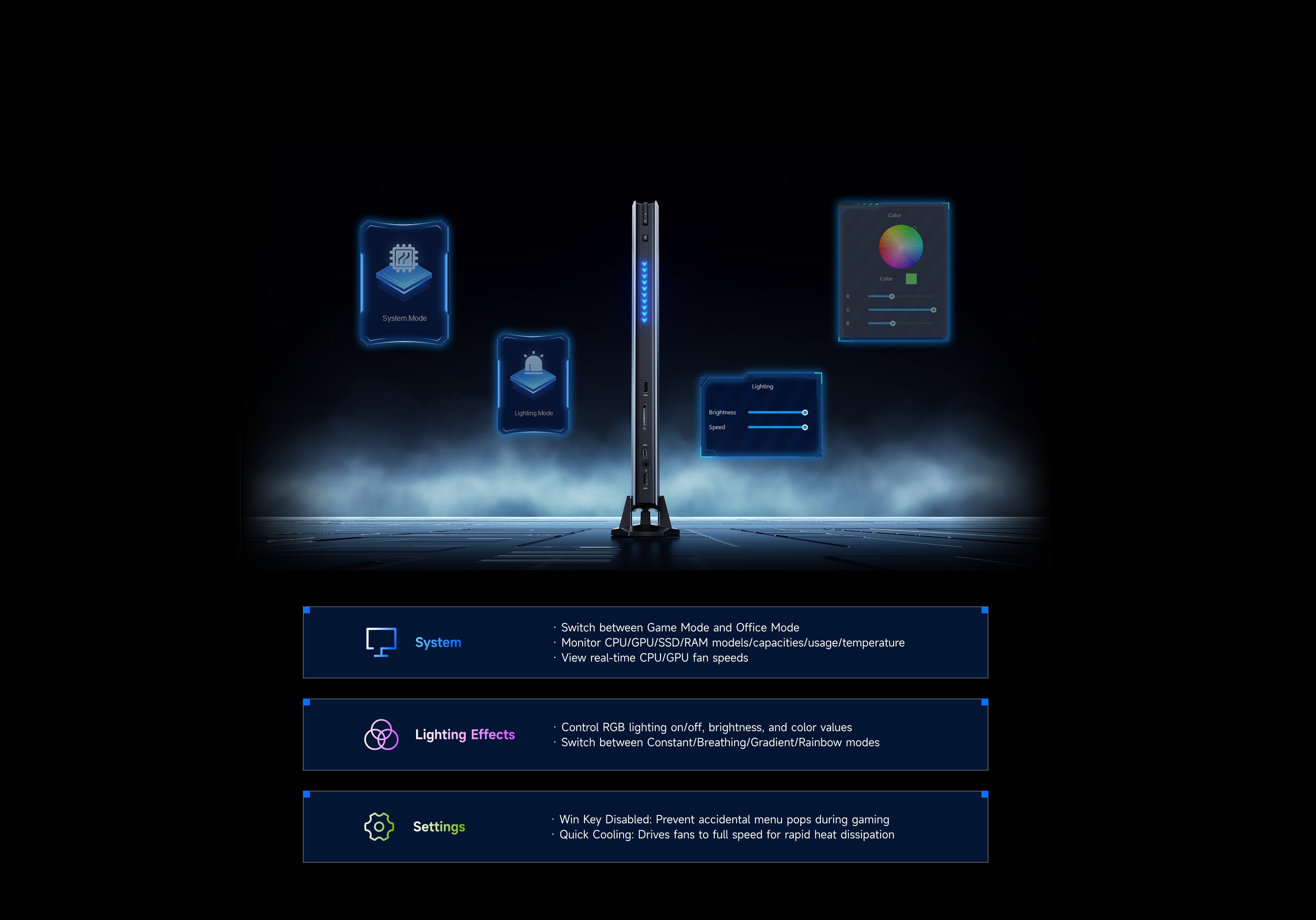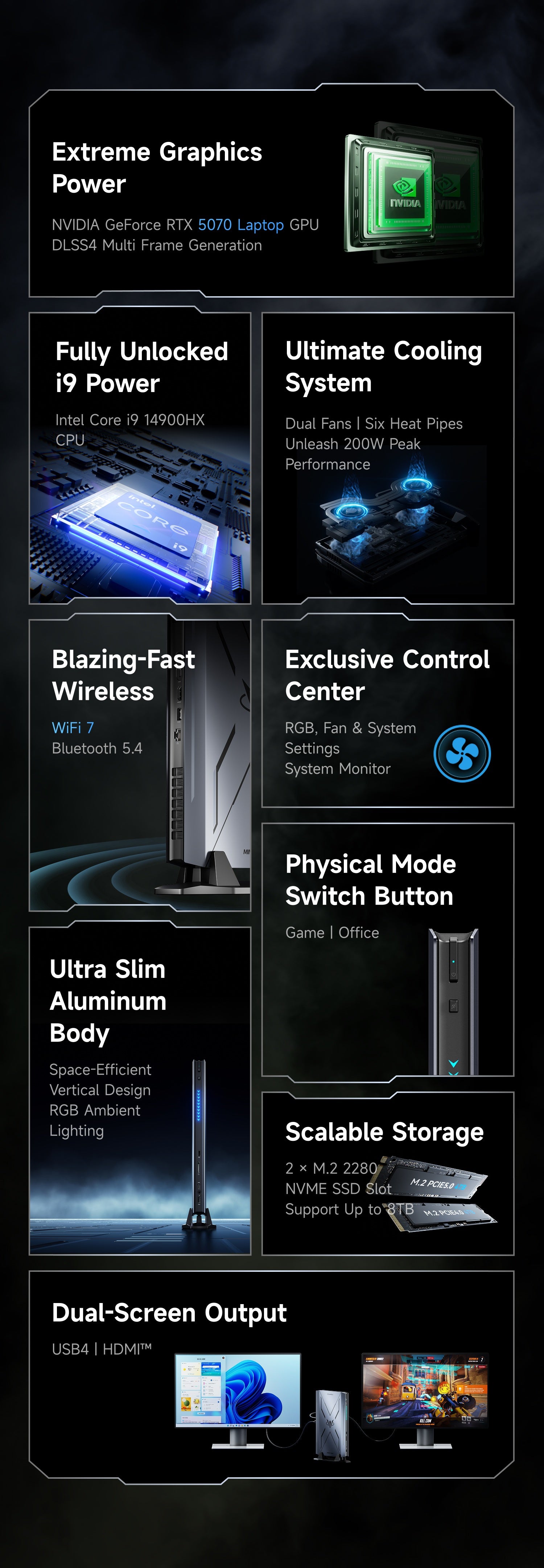 - CPU&GPU Fan Type: 2× 8015mm turbo fan