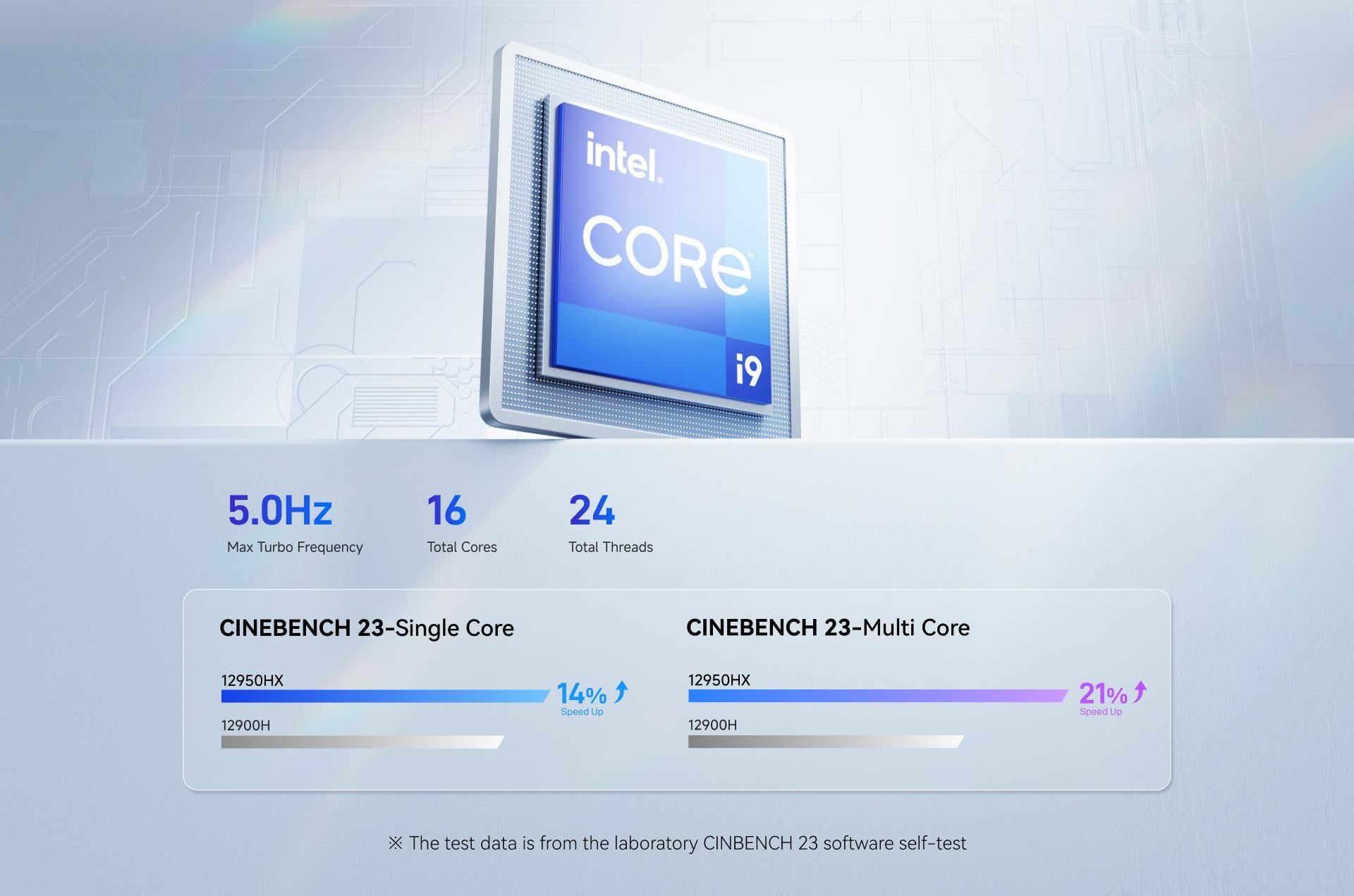 Intel® Core™ i9-12950HX processor is equipped with an advanced hybrid architecture of 8-performance cores and 8-energy efficiency cores, which has strong multi-core performance and high-frequency advantages. Let you feel the flagship level silky smooth switching in every operation.