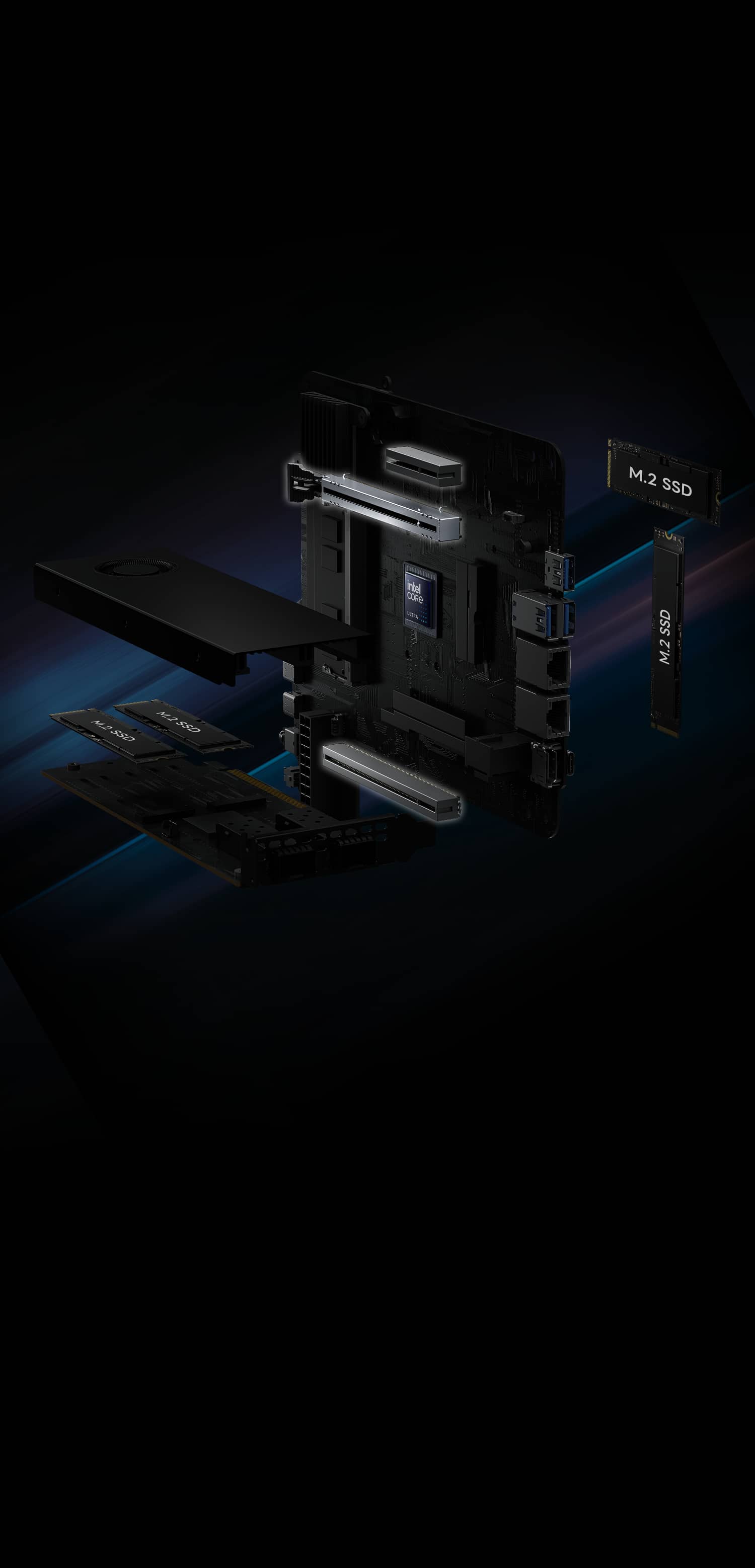 Up to 3 PCIe slots including a ×16 dual-slot GPU,with the primary slot supporting PCIe 5.0 for high-bandwidth creative and computing workloads.