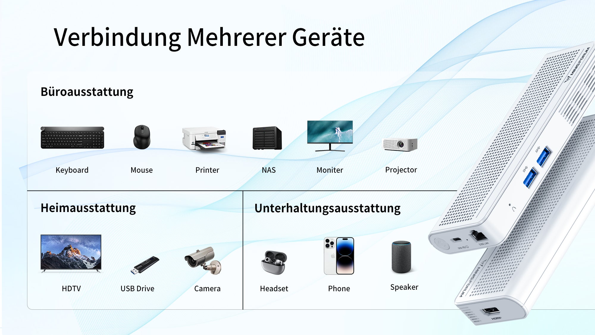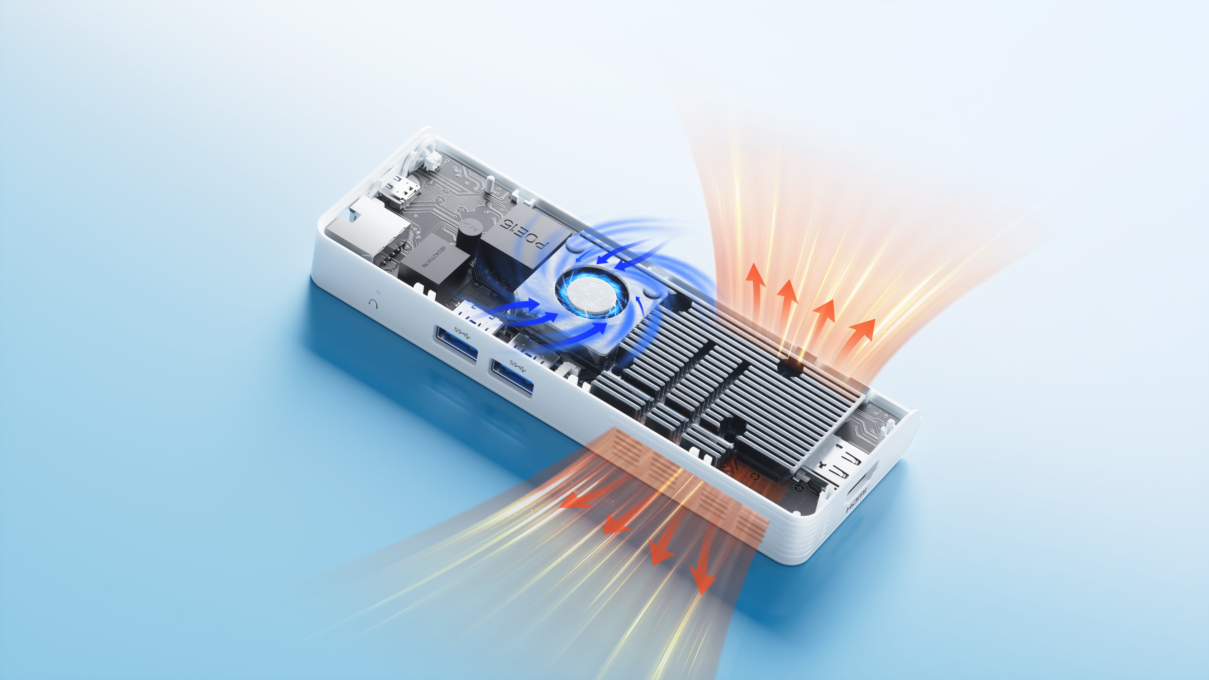 Full-featured USB-C interface supports USB 4.0 protocol, has multiple functions such as charging, data transmission, audio and video transmission, and realizes dual-screen output with HDMI 2.0 interface, and is bi-directionally compatible with Type-A and Type-B interfaces.