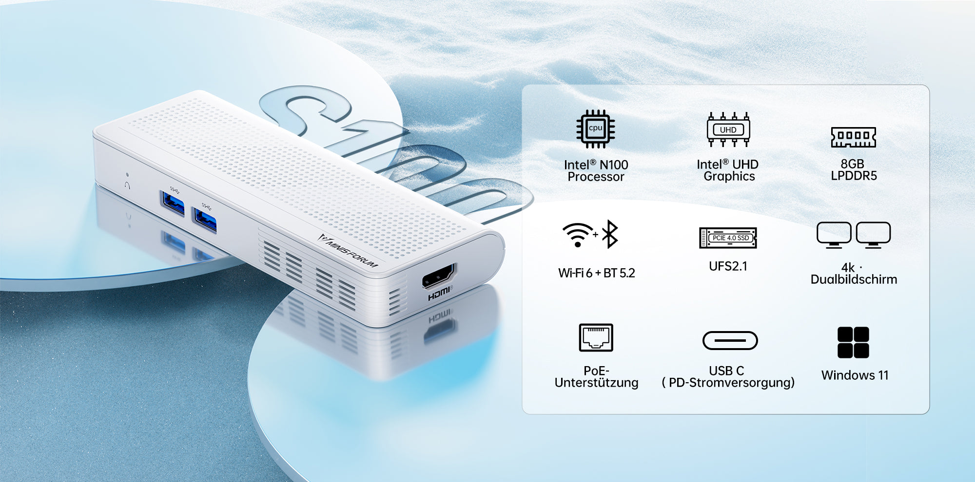 Minisforum has introduced a new portable device-S100 PC Stick! With its compact design, the device can convert a single-function projector, monitor or TV into a fully functional computer when connected and used.