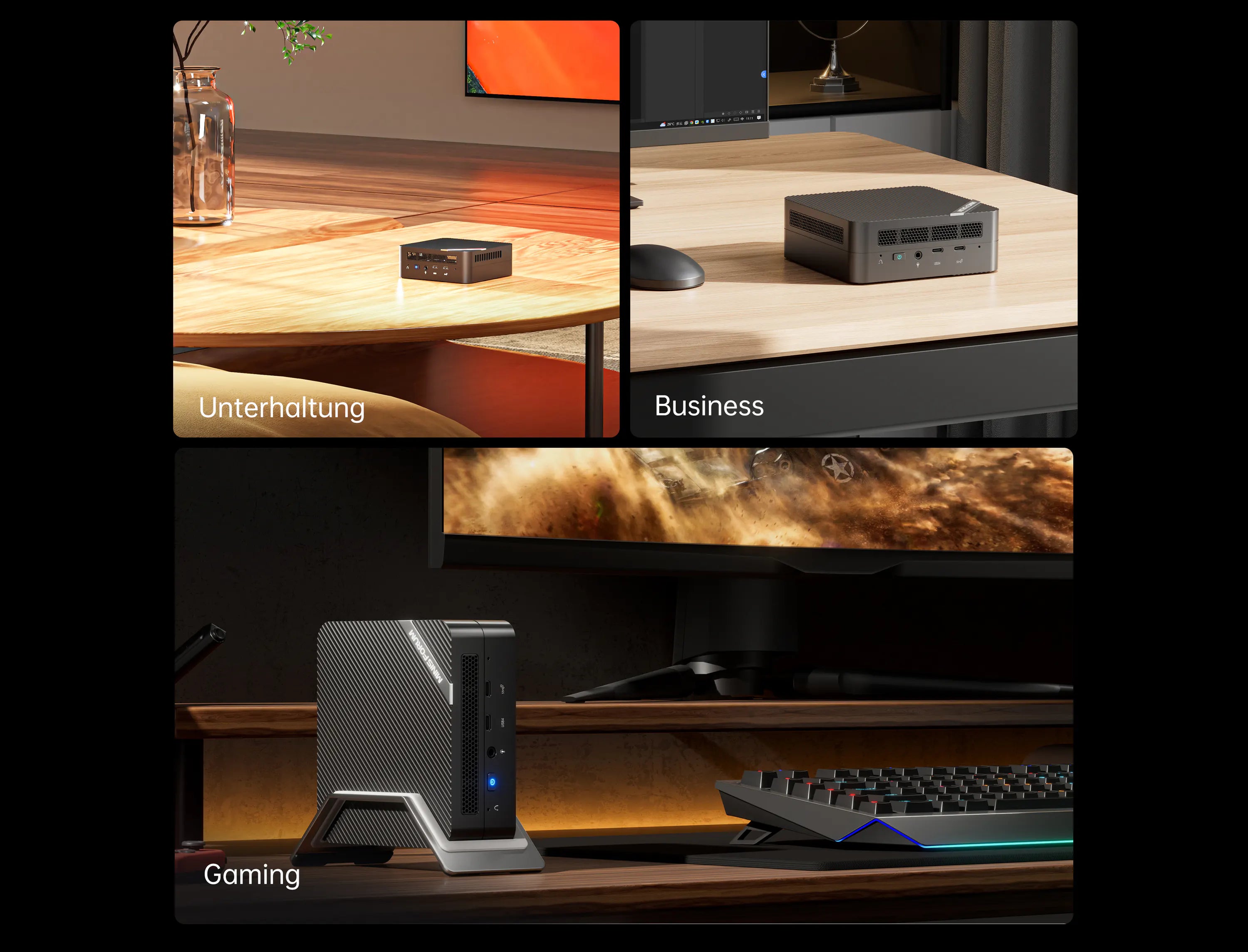 Das UM773 Lite bietet umfassende Konnektivität in einem kompakten Gehäuse. Es verfügt über einen voll funktionsfähigen USB4-Anschluss, vier USB Typ-A-Anschlüsse, zwei HDMI 4K@60Hz-Anschlüsse und einen RJ45 2.5 Gigabit Ethernet-Anschluss.