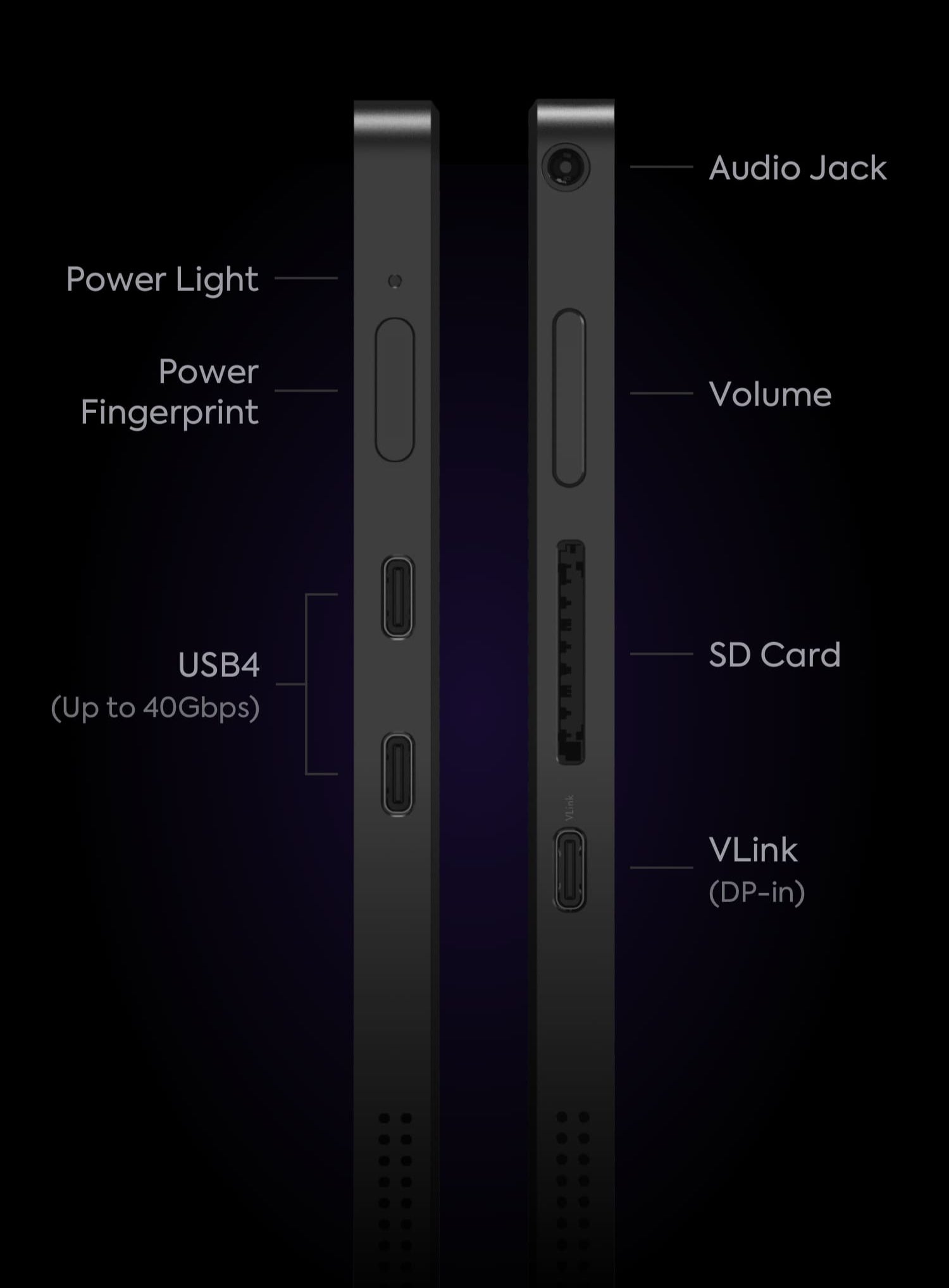 1. Function Description: VLink (DP-in) only supports portable display function when the input device is connected to the V3's VLink port via the Type-C connector while the computer is turned off. This allows the input device's video and audio signals to be displayed directly.