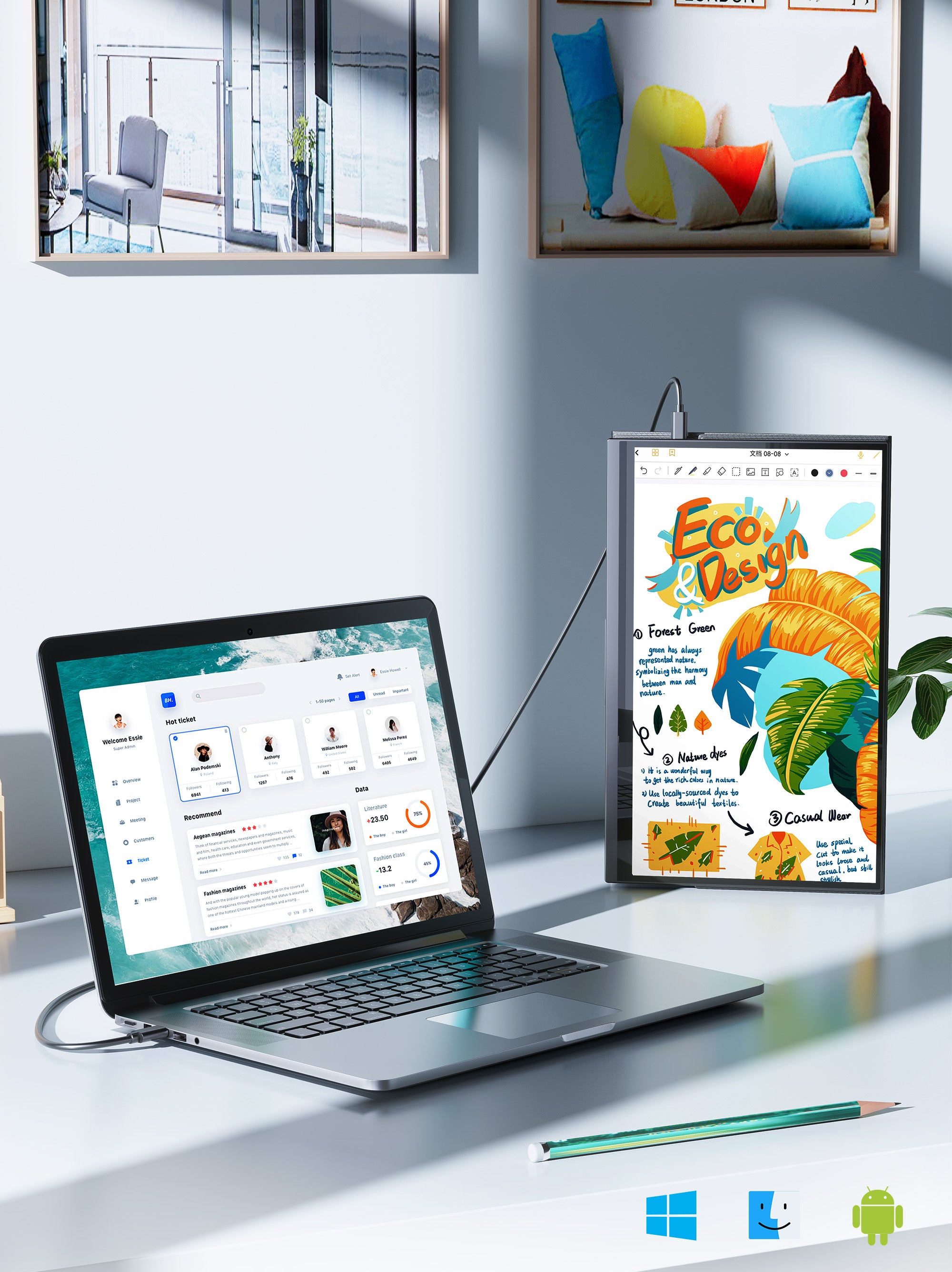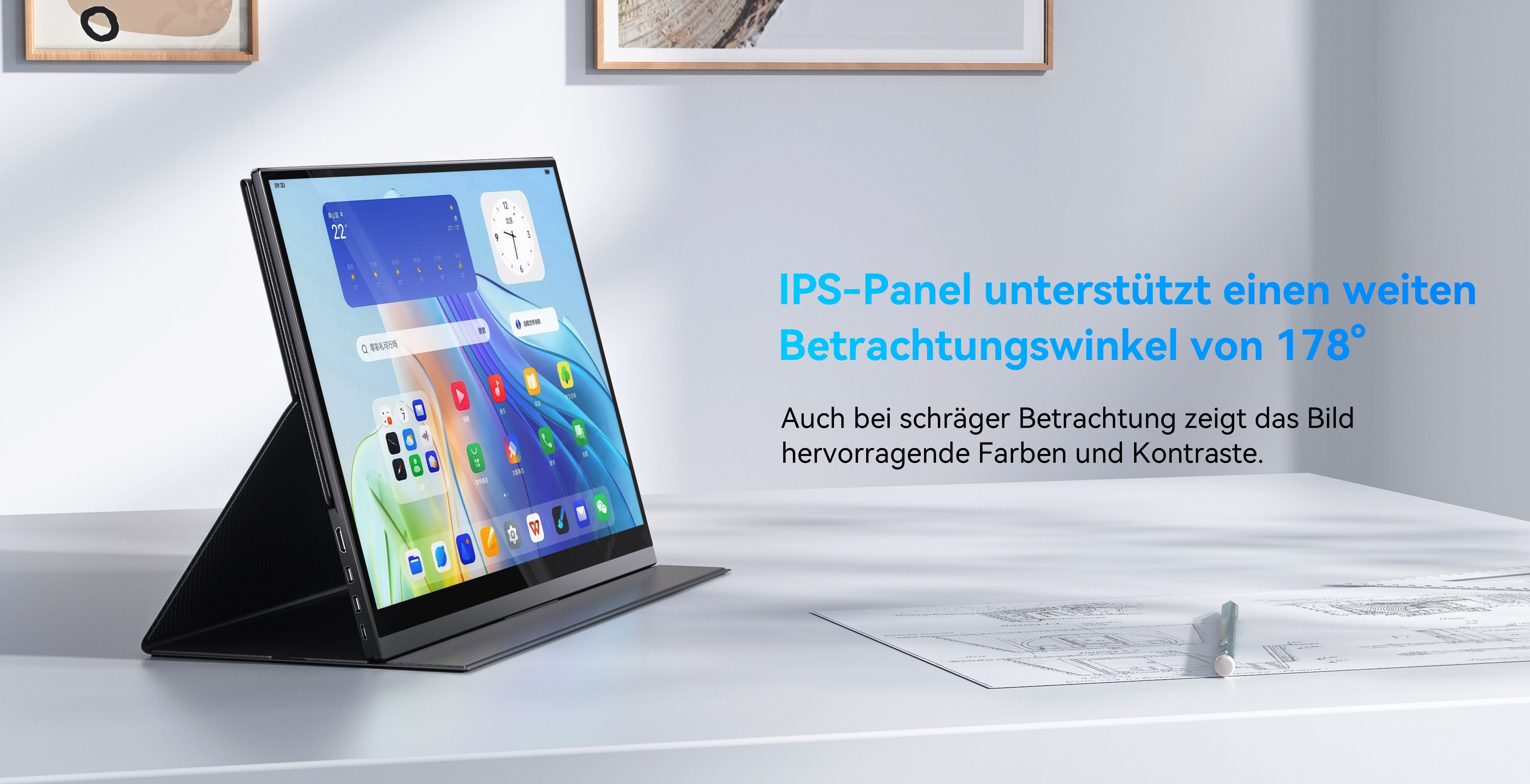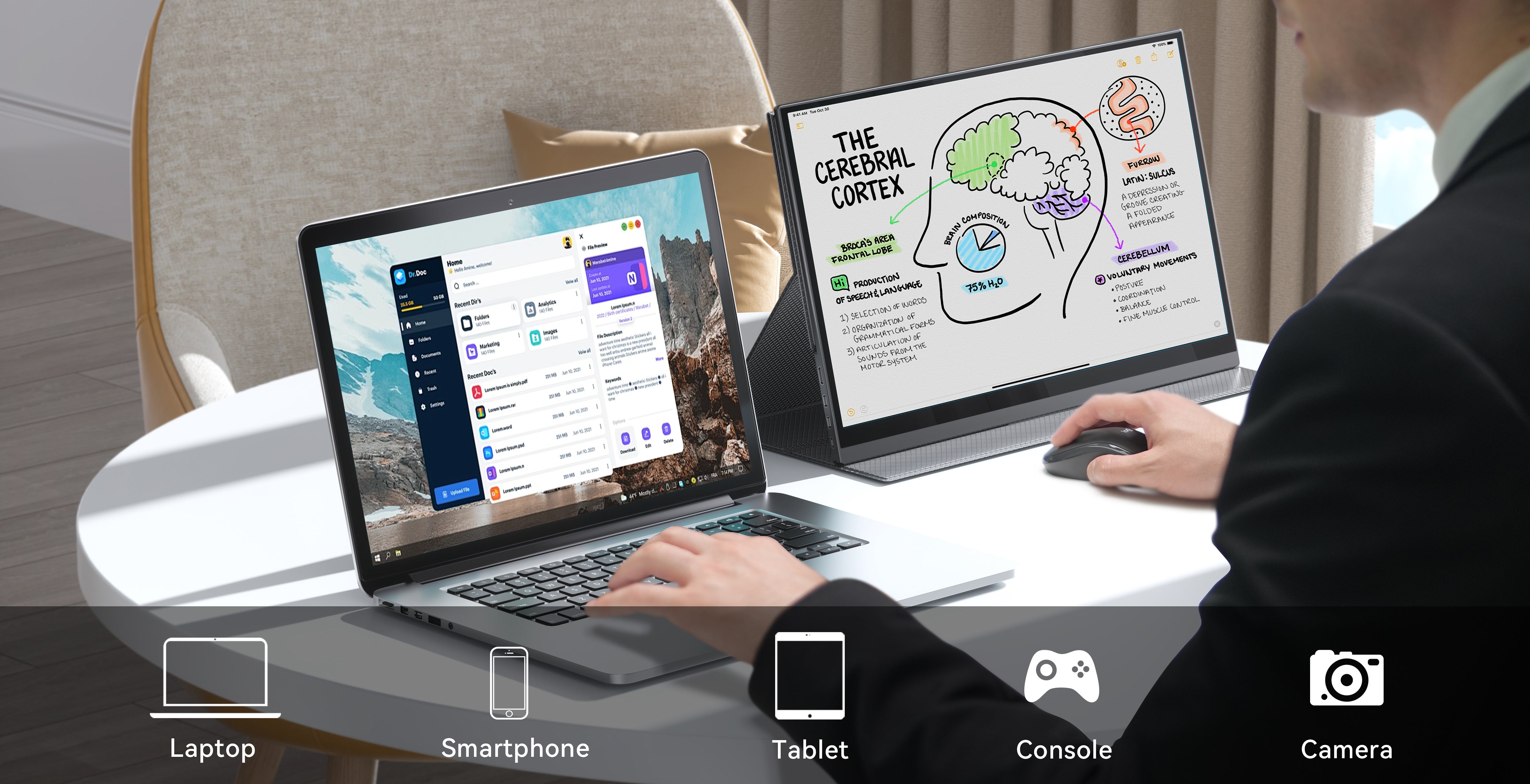 The monitor is compatible with a wide range of systems and can be switched to landscape or portrait mode via the system settings. Landscape view is ideal for presentations and Excel spreadsheets, while portrait view is ideal for documents, reading books, and mobile websites, and does not require you to hold the monitor with your hands, leaving your hands free for effortless browsing.