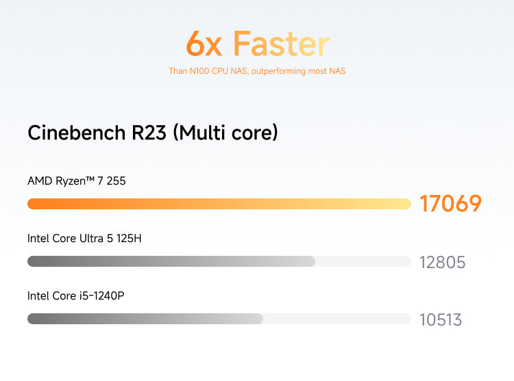 Delivers robust multi-threaded performance for concurrent access and fast file retrieval. Outperforms N100-class NAS in media decoding, offering significantly stronger overall performance.