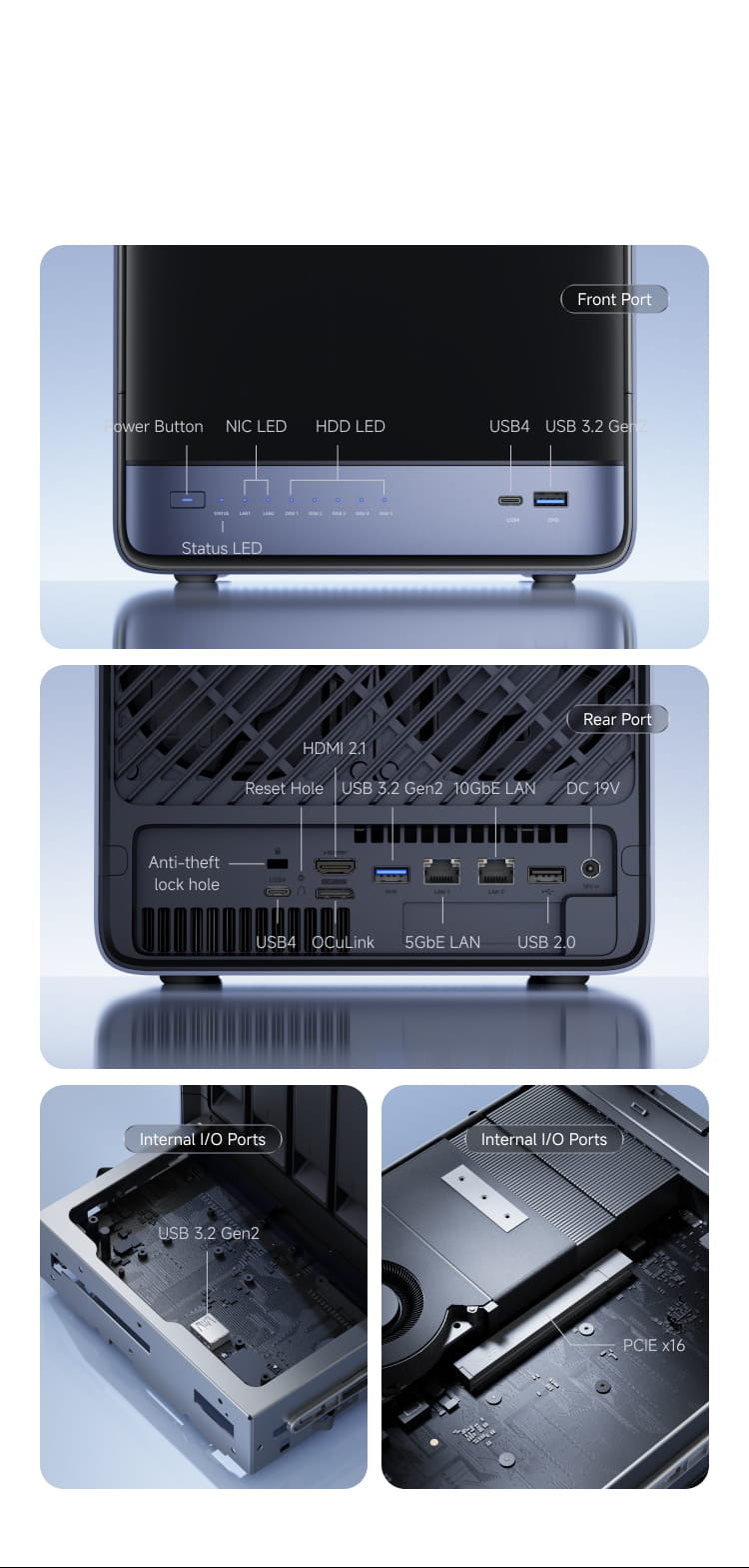 • 1× M.2 2230/2280/22110 NVME SSD (up to 4TB, PCIE4.0 ×1)