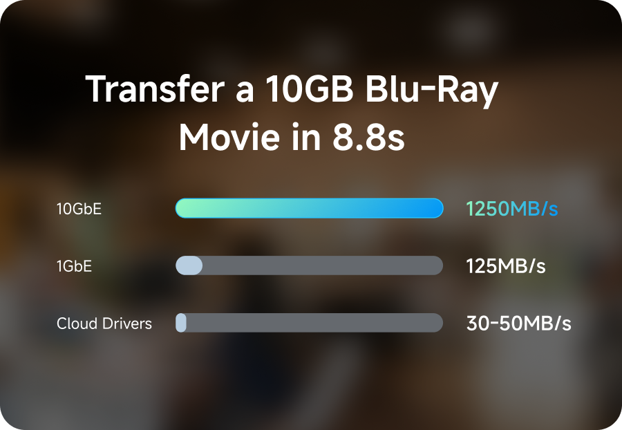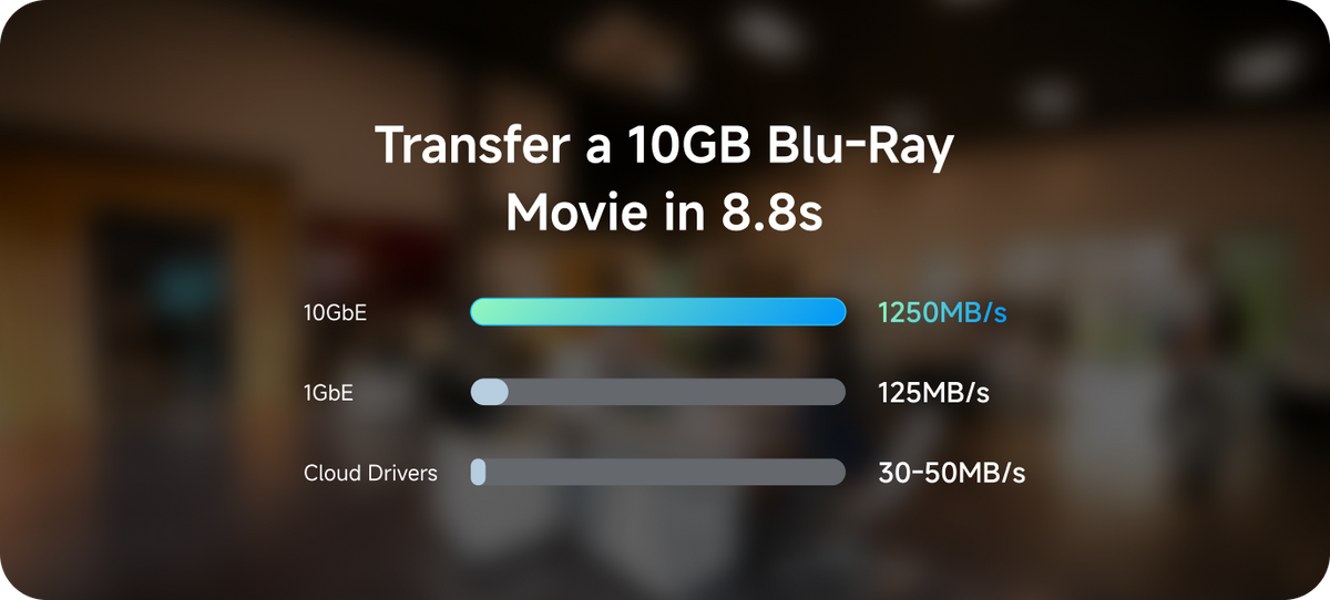 10GbE networking delivers ultra-fast transfers for cross-team workflows, massive file handling, and heavy multitasking with ease.