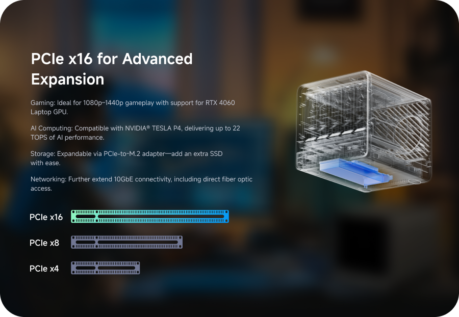 • 1× M.2 2230/2280/22110 NVME SSD (up to 4TB,PCIE4.0 ×1)