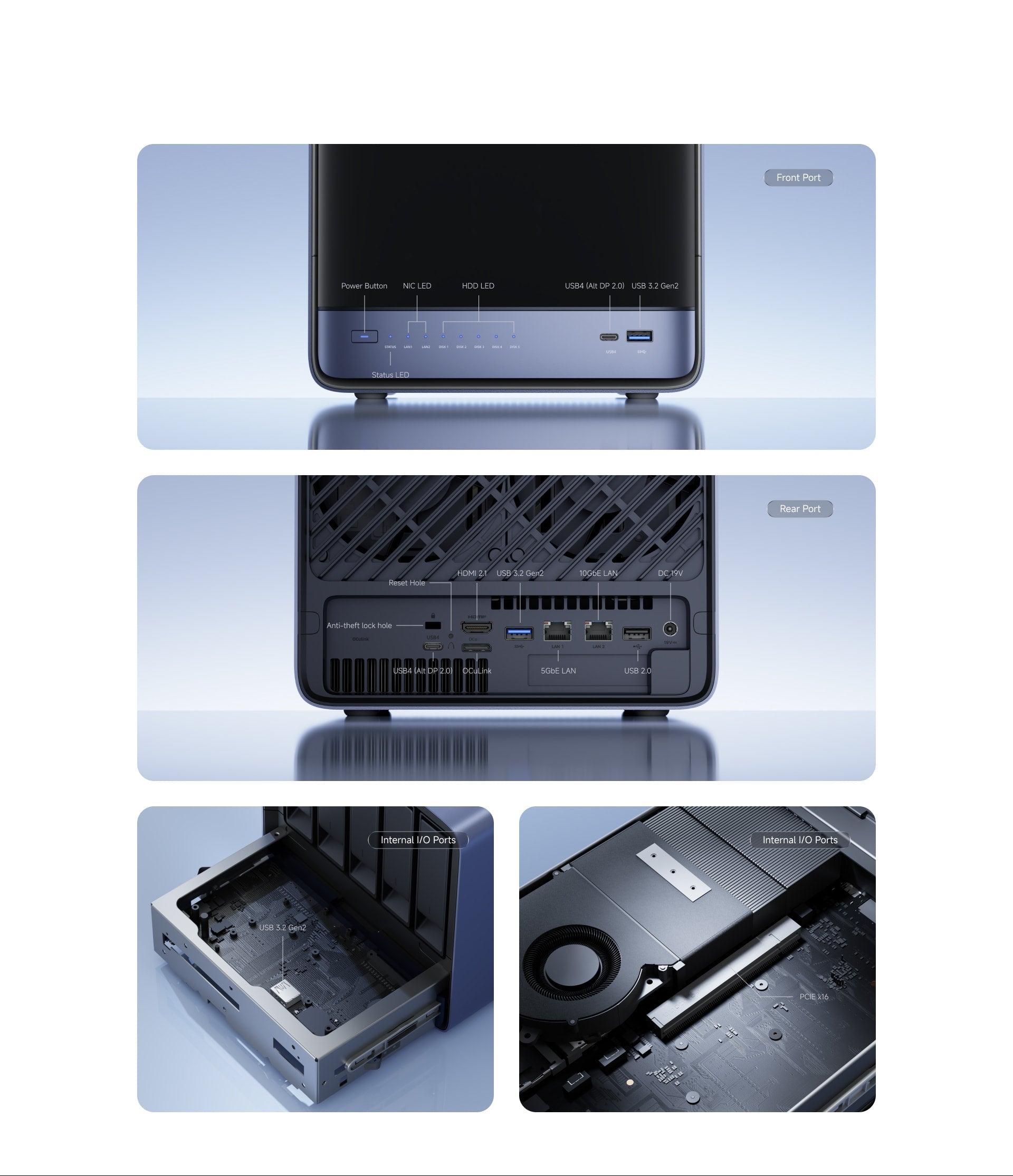 - 1× U.2/M.2 2280/22110 NVME SSD (up to 15TB,PCIE4.0 ×2)