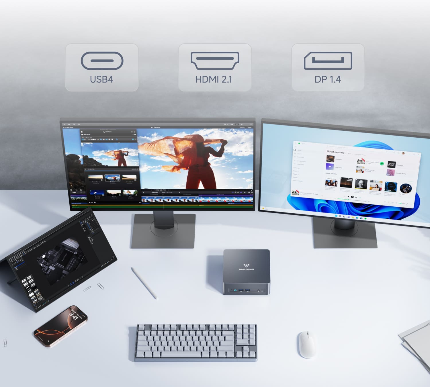 Equipped with USB4, HDMI, and DP ports, up to three 4K displays can be connected simultaneously. This allows for easy multi-screen office work without having to frequently switch between websites, significantly improving work efficiency.