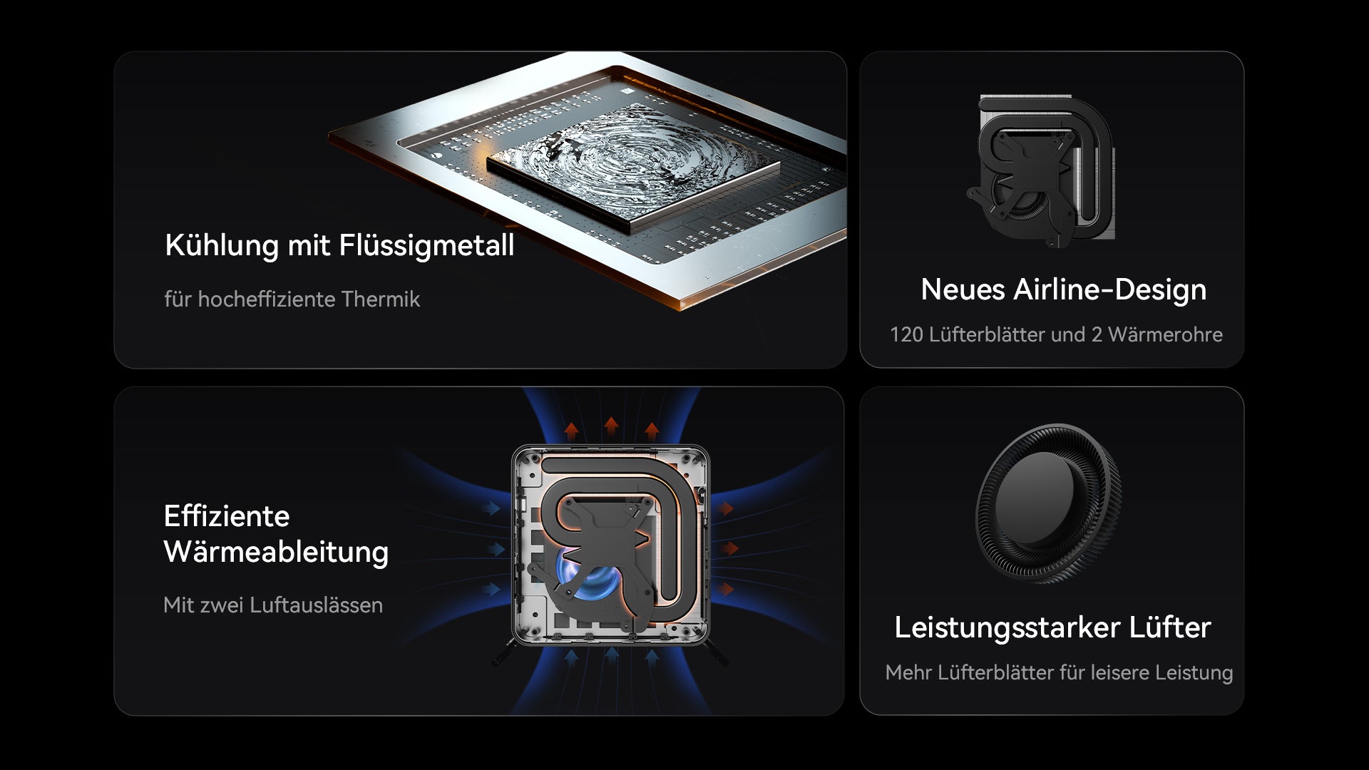 The thermal system allows the UM773 Lite to operate under full load with relatively low temperatures and noise. The improved craftsmanship enhances the stability and efficiency of liquid metal cooling. The liquid metal is able to transfer heat quickly. In addition, the intelligent 120-blade fan can run at high speed and lower noise level.